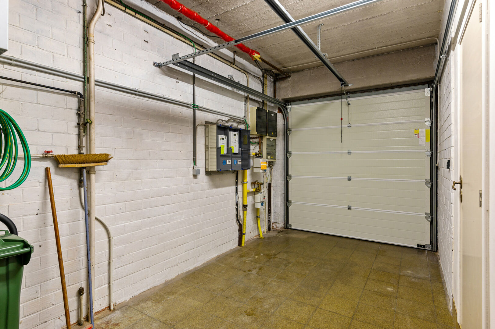 De garage bevindt zich rechts vooraan, heeft een automatische poort en er is een aansluiting voorzien voor wasmachine.