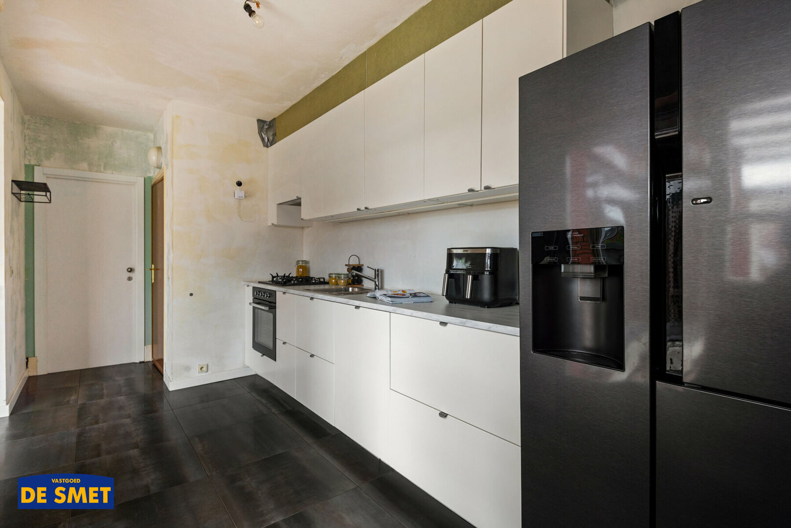 Via de inkom met apart toilet komt u in de recent vernieuwde open ingerichte keuken met toestellen.
