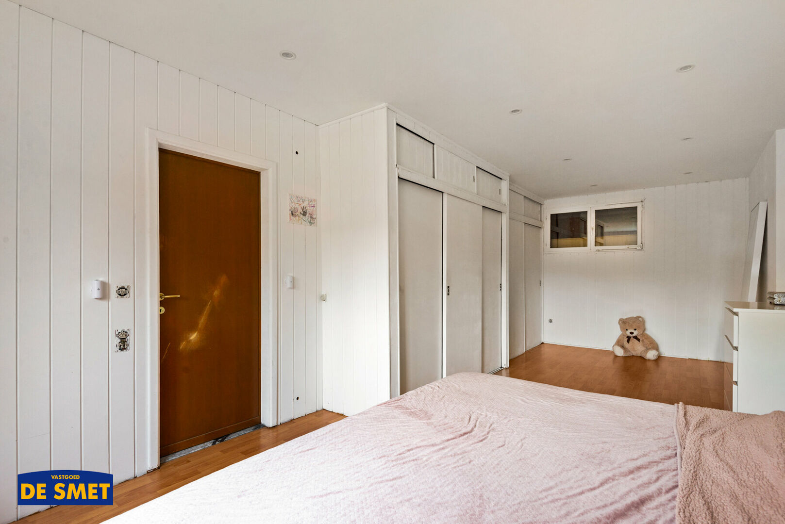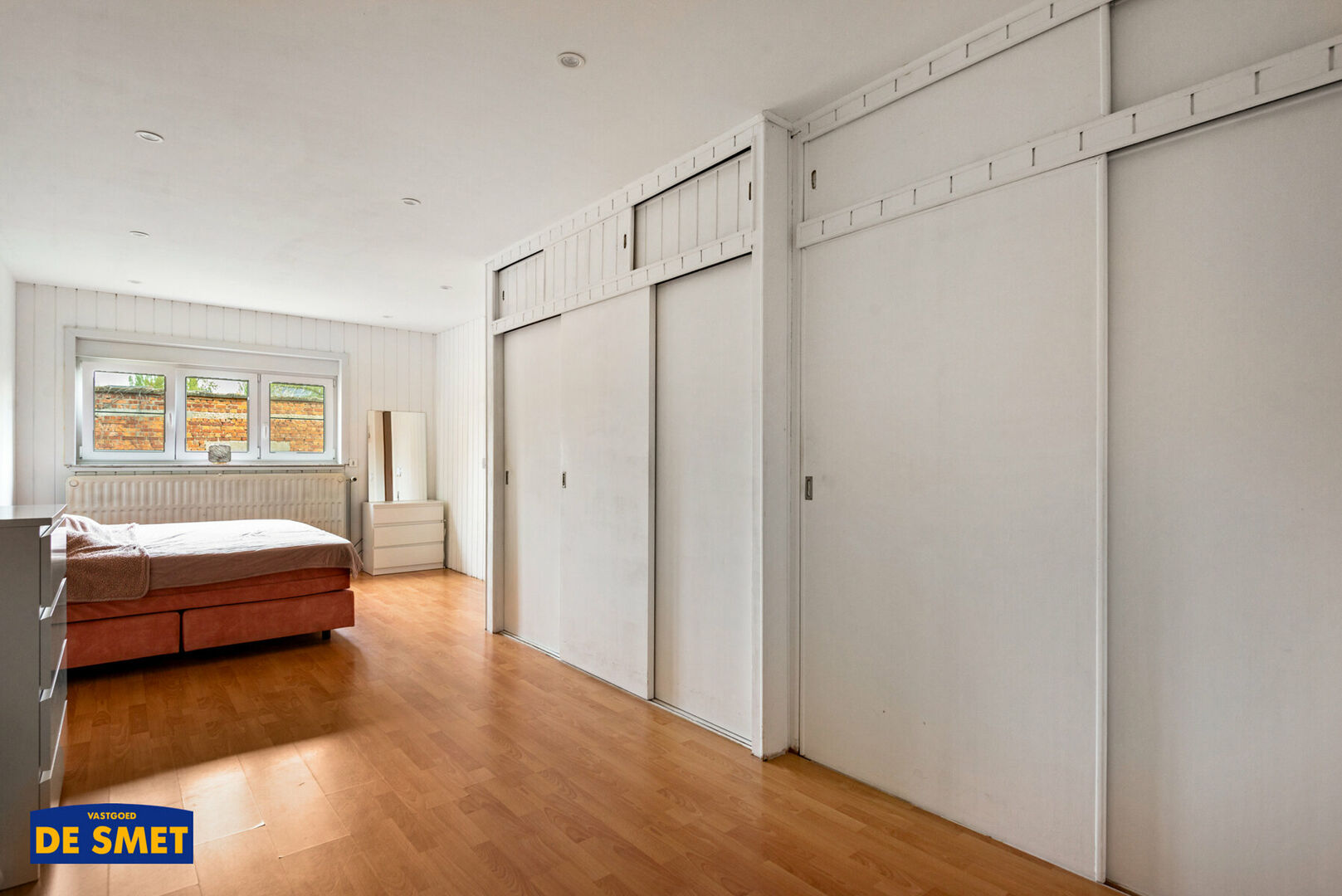 De zéér ruime slaapkamer is achteraan gelegen en heeft ingemaakte kasten.
