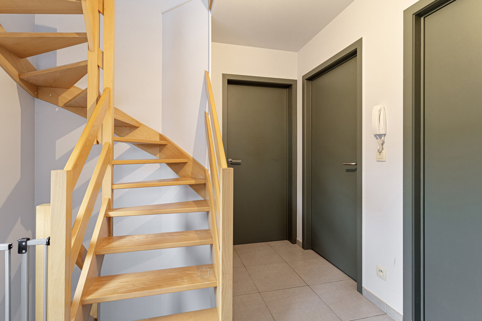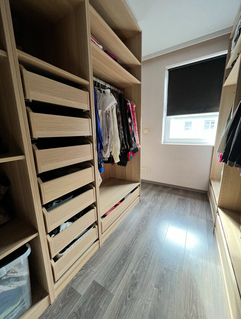 Op de eerste verdieping bevinden zich de master bedroom met dressing, 1 kinderkamer, een berging en de ingerichte badkamer met ligbad, douchecel, dubbel lavabomeubel & toilet.