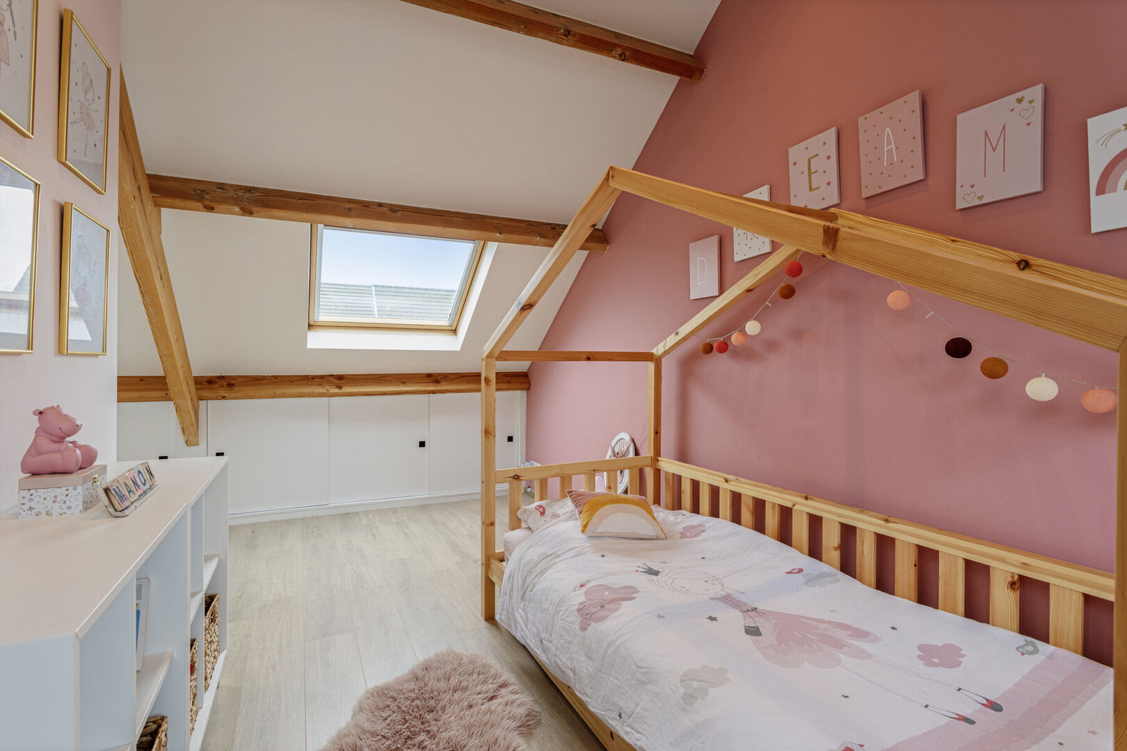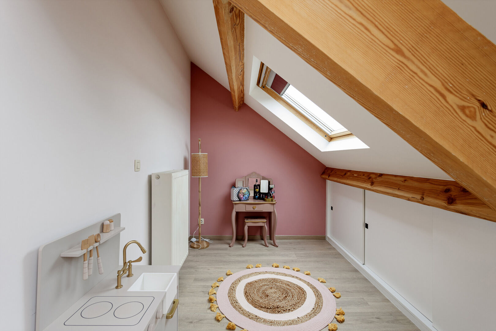 De grootste L-vormige kinderkamer is samen met een extra berging op de tweede verdieping gelegen.