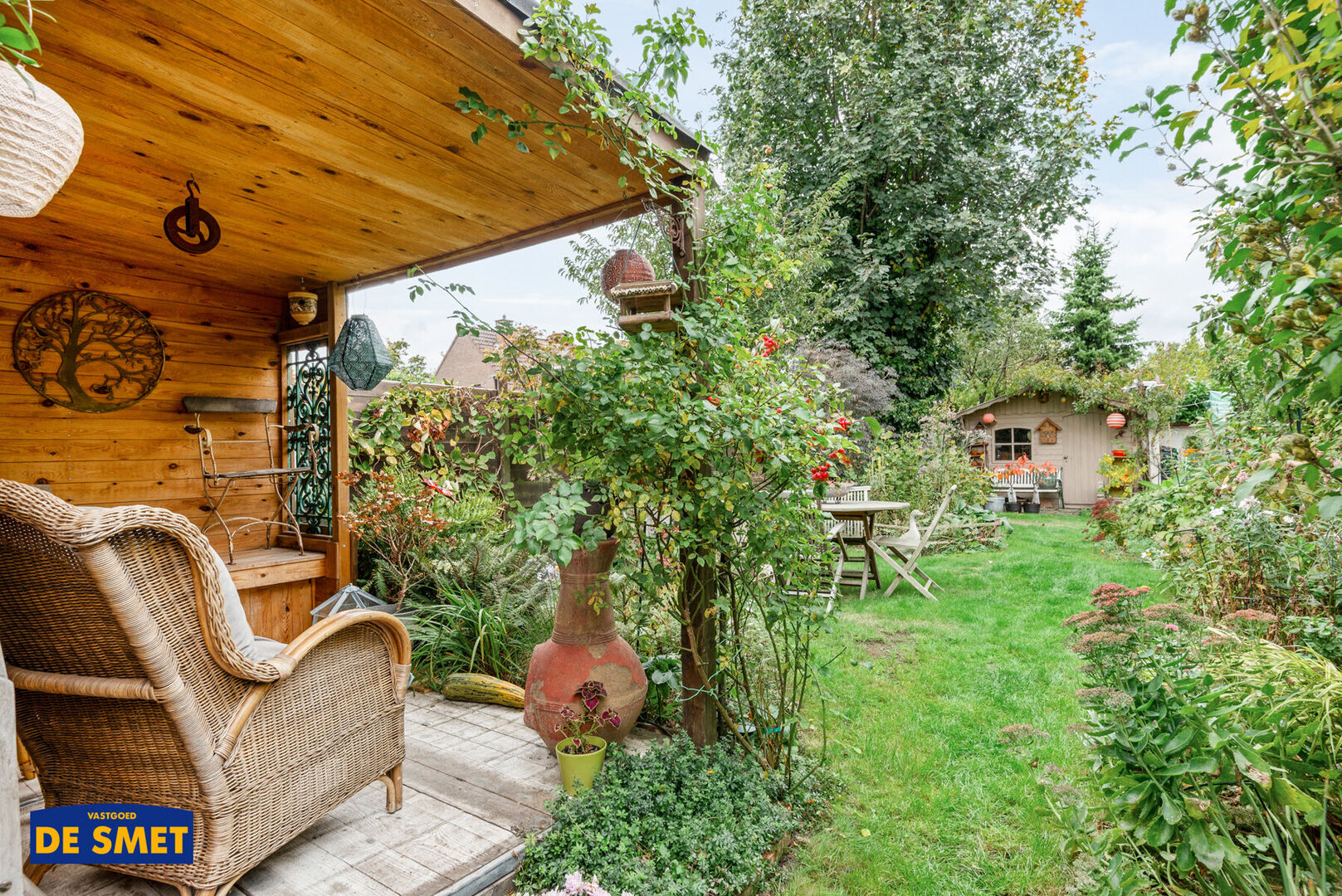 De volledig aangelegde tuin met twee terrassen en een tuinhuis is naar het noorden gericht.